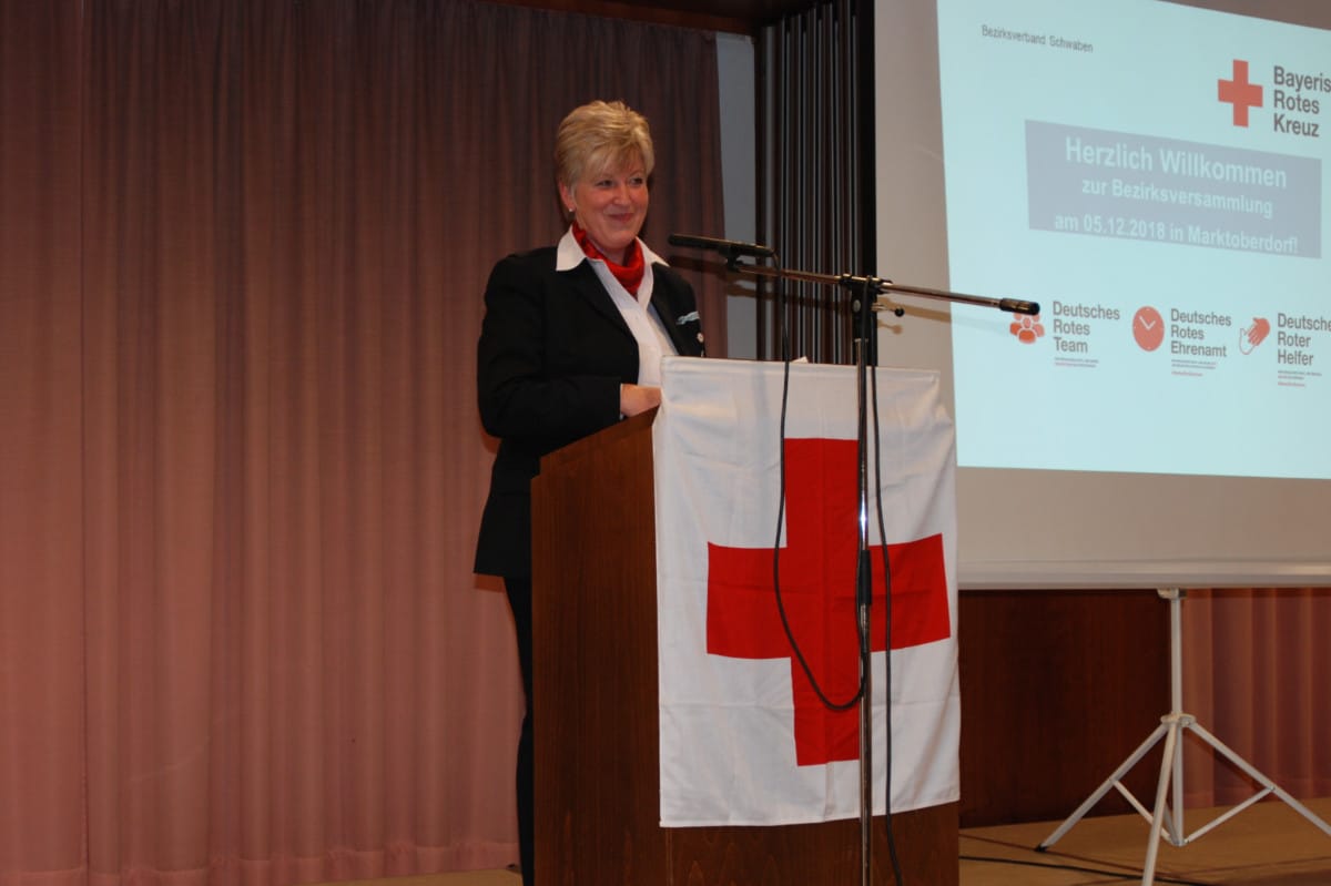 Zum Tag des Ehrenamts lud der Bezirksverband Schwaben des Bayerischen Roten Kreuzes alle Delegierten aus den 11 Kreisverbänden sowie die leitenden Ehrenamtlichen der schwäbischen Rotkreuzgemeinschaften ins Rathaus nach Marktoberdorf. Rund 100 Gäste waren der Einladung zu dieser besonderen Bezirksversammlung gefolgt, unter ihnen auch Regierungspräsident Dr. Erwin Lohner.
