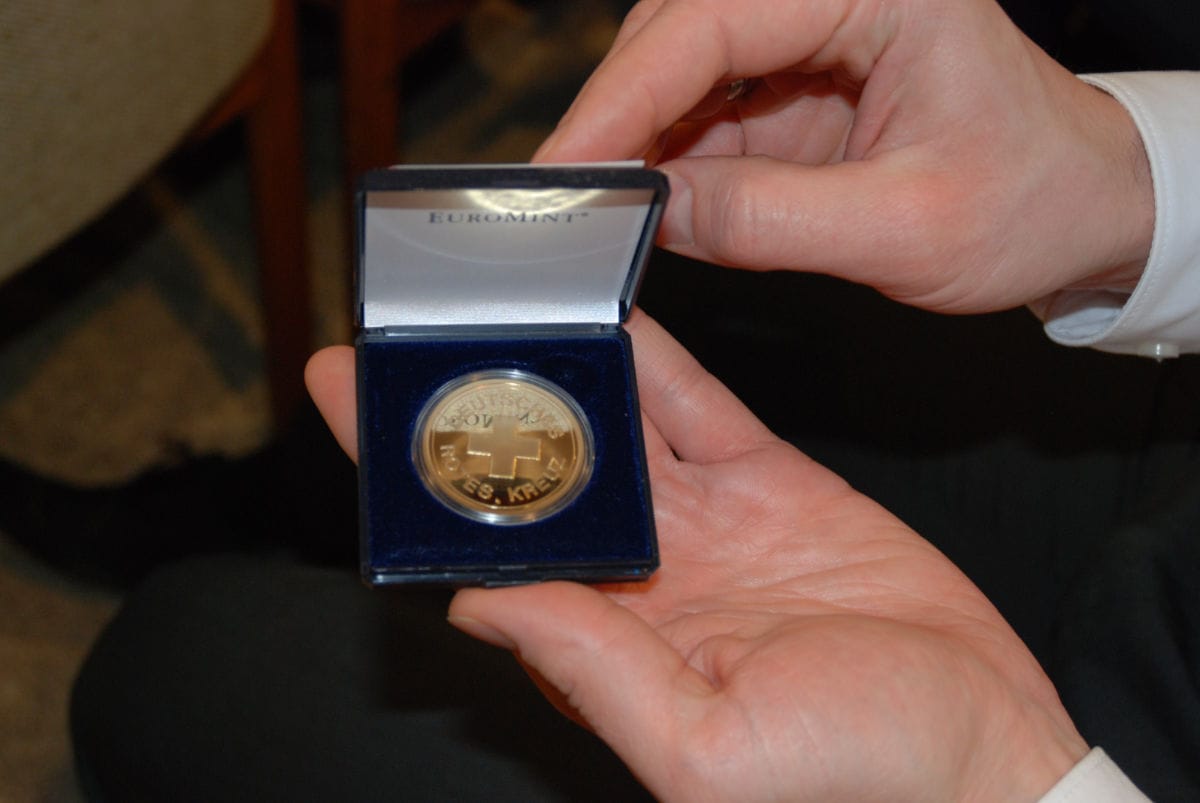 Nach vielen praktischen Impulsen überreichte Bezirksvorstandsvorsitzende Schorer allen Ehrenamtlichen „zum Dank an ihre Leidenschaft, Hingabe und Berufung, im Roten Kreuz tätig zu sein,“ eine Ehrenmünze. Passend zum Thema sind die sieben Rot-Kreuz-Grundsätze eingraviert.