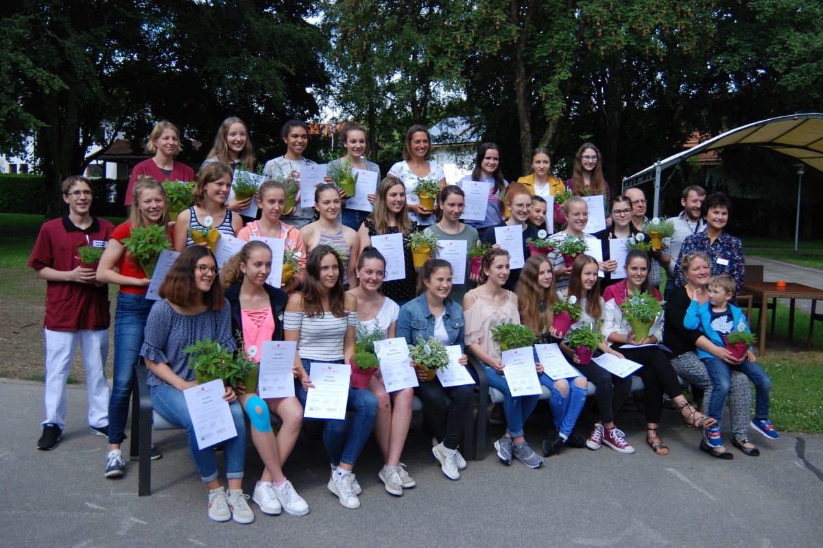 Es klang, als empfingen Sportfans ihre Lieblingsmannschaft. Der Applaus und die Hallo-Rufe der Bewohner des Seniorenwohn- und Pflegeheims Gulielminetti galten 27 Schülerinnen des benachbarten Gymnasiums Marktoberdorf. Das Zusammentreffen im Garten des Hauses war der Abschluss des gemeinsamen Projekts „Lernen durch Engagement“. Seit Februar gestalteten und leiteten drei Zehntklässlerinnen im Wechsel wöchentlich eine Gymnastikstunde im Seniorenheim des Bayerischen Roten Kreuzes.