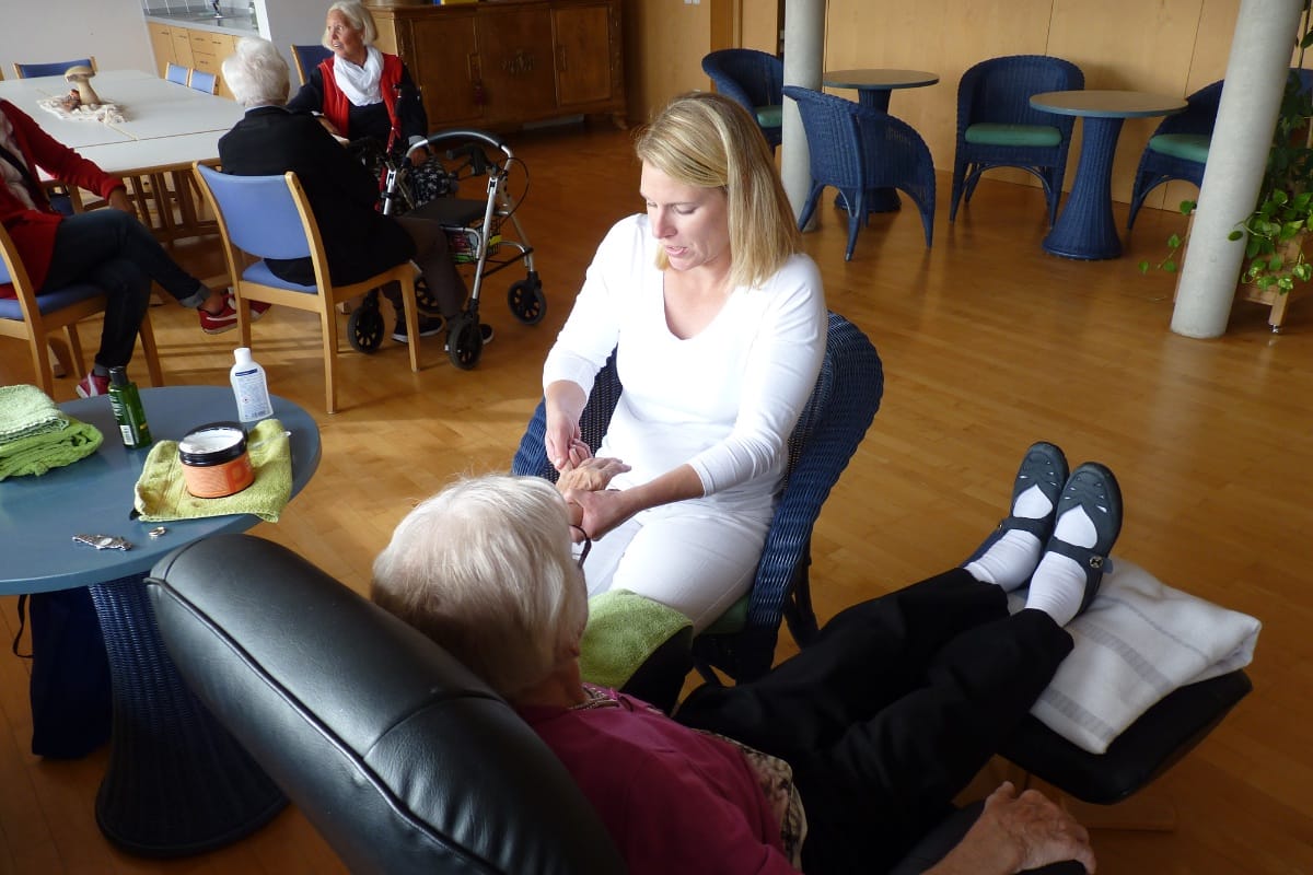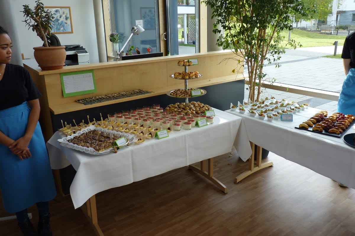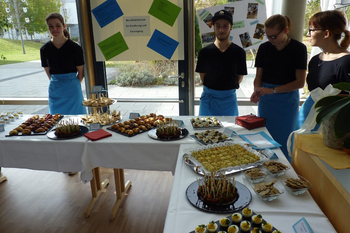 Viele Bewohner und interessierte Seniorinnen und Senioren von auswärts nutzten den Gesundheitstag im Clemens-Kessler-Haus in Marktoberdorf, um sich unter dem Motto "Fit und gesund ein positives Lebensgefühl erhalten" zu informieren. So gab es von der AOK Kaufbeuren-Ostallgäu anschauliche Tipps für eine gesunde Ernährung, umfangreiches Infomaterial am Infostand des Gesundheitsamtes und einen interessanten Vortrag über "Depression im Alter". Für den Körper gab es eine Life Kinetik-Schnupperstunde und Wellness-Handmassagen. Und für das Herz sangen die Kinder des Kinderhorts Sankt Martin den Besuchern muntere Lieder vor. Das Highlight des Tages hatten die Schüler der marktoberdorfer Berufsfachschule für Ernährung und Versorgung in Gepäck: Das Buffet mit leckeren und gesunden Kostproben aus ihrer Küche wurde sehr gut angenommen.
