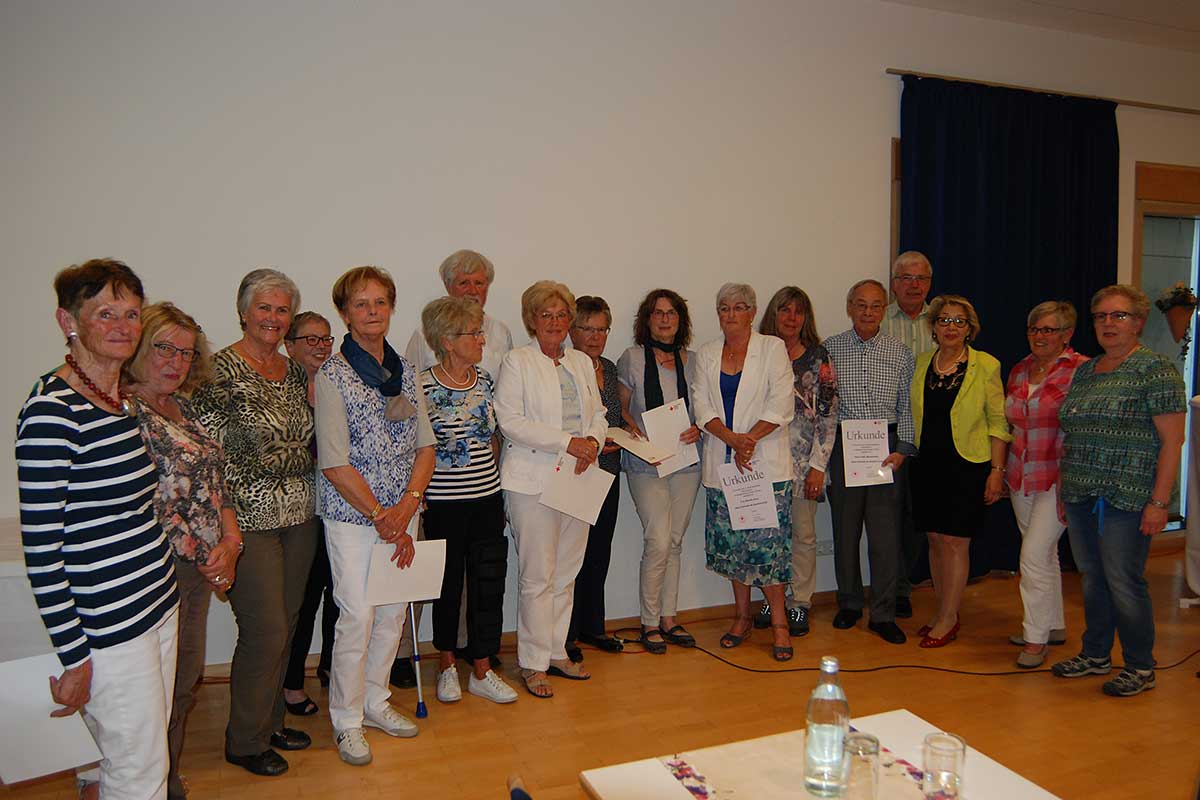 Die besonders Treuen mit zehn und mehr ehrenamtlichen Jahren sind: Herta Bayrhof, Doris Erlenmaier, Evi Fichtl, Maria Fischer, Erika Frey, Wilma Friedhoff, Barbara Fuchs, Eva Maria Gellenbeck, Altin Gülten, Helmut Heiß, Regine Kleinert, Doris Klöck, Gretel Müller, Marianne Nägele, Christine Schmidt, Evi Stelle, Anita Trippensee, Centa Willer, Annelies Wittwer.