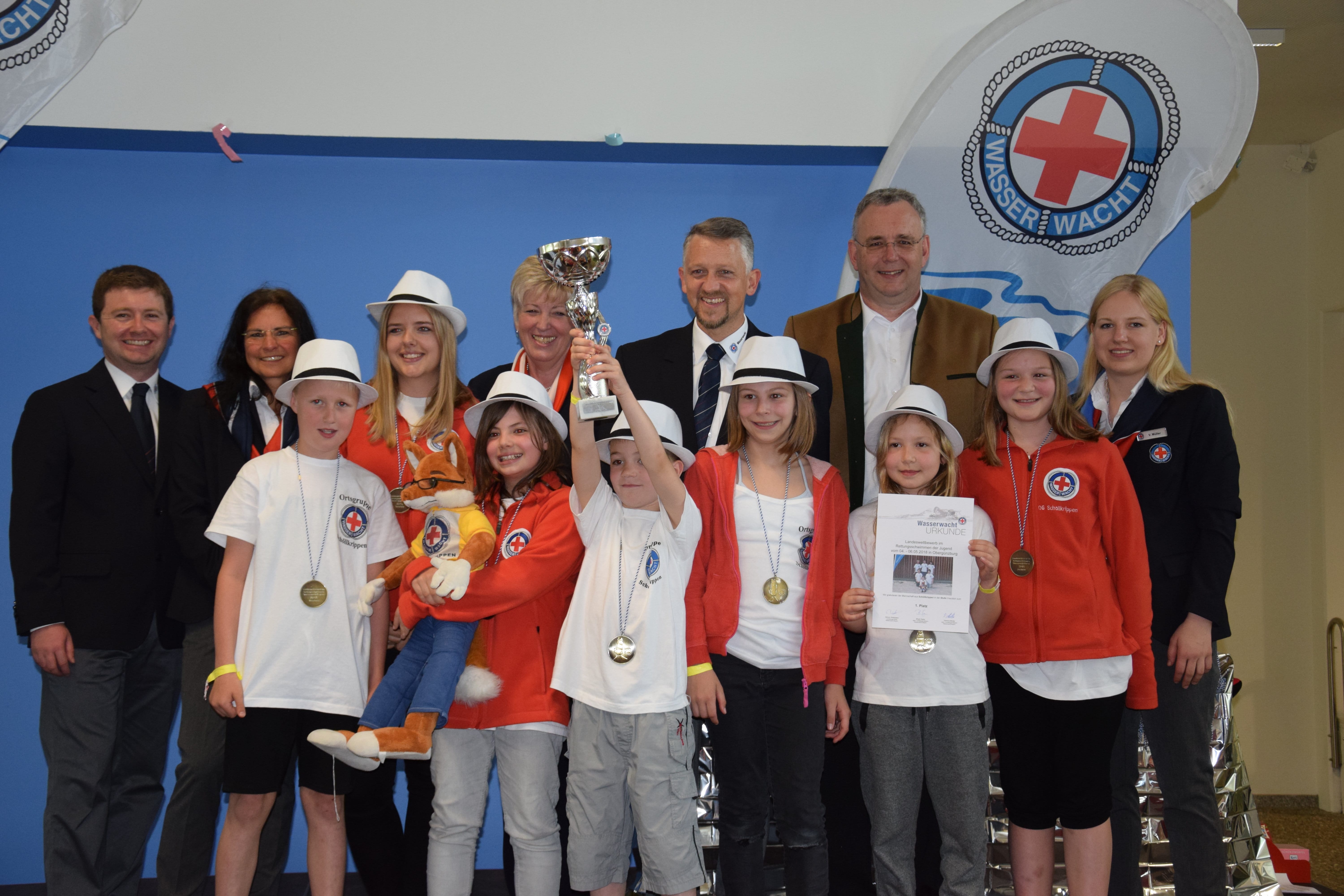 Wo unter der Woche die Obergünzburger Schüler die Schulbank drücken, wurden vergangenes Wochenende Verbände angelegt, Rettungsringe ausgeworfen und um die Wette geschwommen: Die Wasserwacht Bayern des Bayerischen Roten Kreuzes veranstaltete ihren Landeswettbewerb im Rettungsschwimmen der Jugend in dem beschaulichen Ort im Ostallgäu. Kinder und Jugendliche im Alter von acht bis 16 Jahren waren aus allen fünf Bayerischen Bezirksverbänden für den Wettbewerb in Obergünzburg angereist.