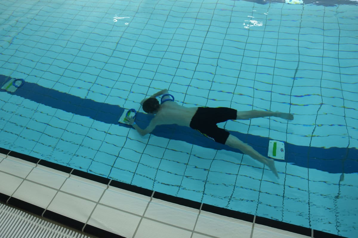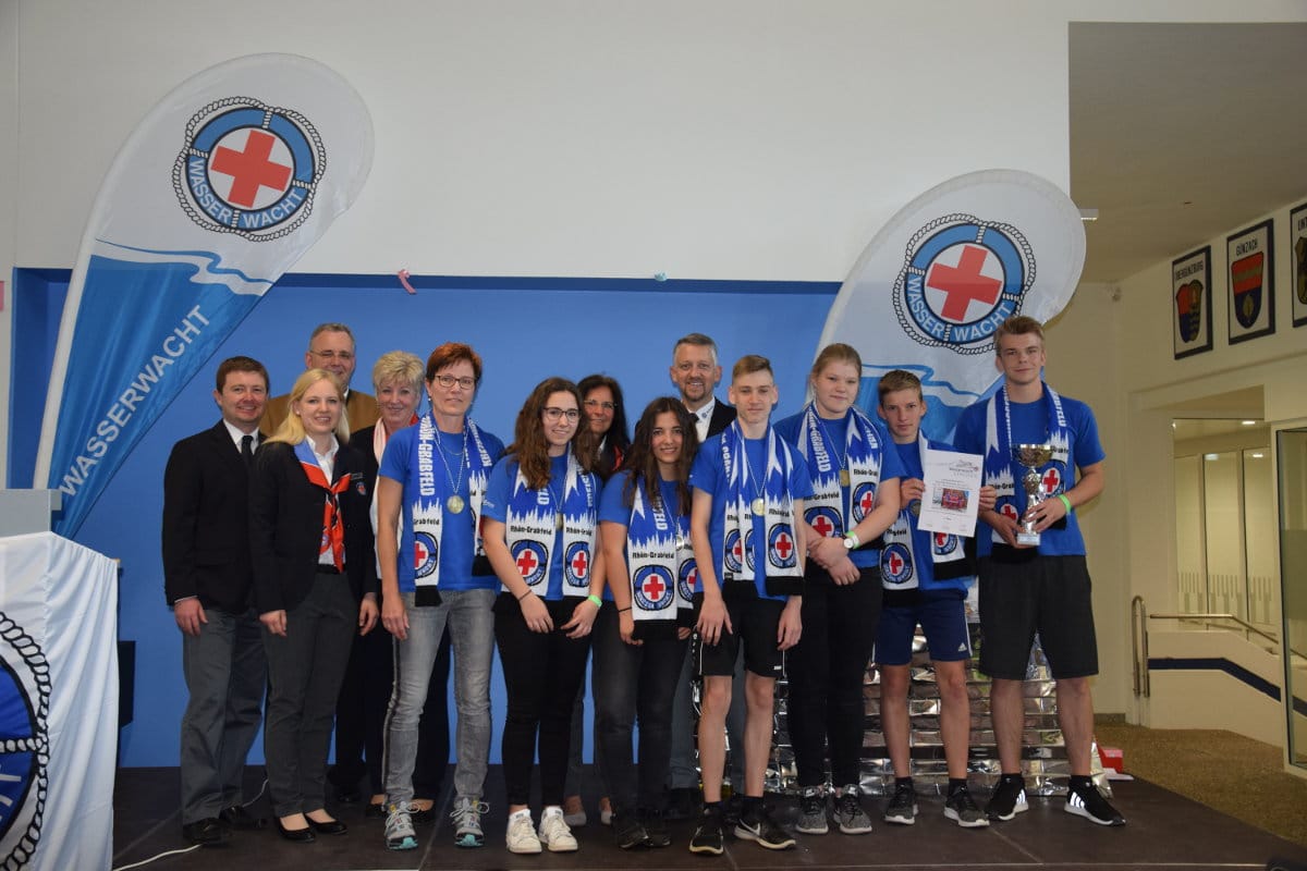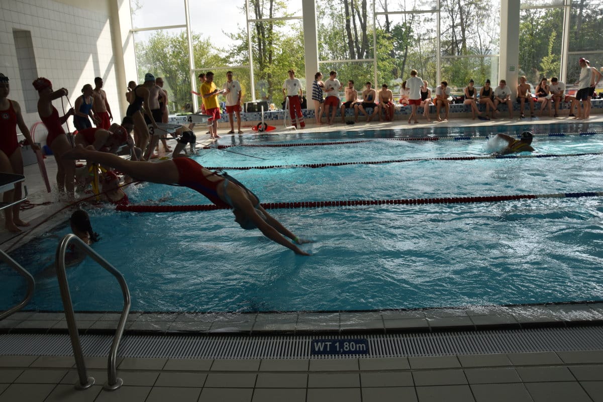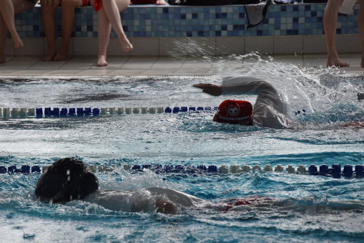 Einen Steinwurf entfernt wurde derweil im Hallenbad in Staffeln um die Wette geschwommen. Die Nachwuchs-Rettungsschwimmer mussten verschiedene Rettungsschwimm-Techniken anwenden, mit Kleidung und mit Flossen schwimmen, nach Ringen tauchen und Rettungsringe und -bojen einsetzen.