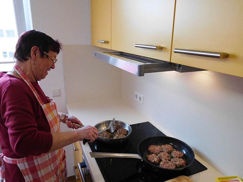 Nach einer Komplettsanierung wurde die Therapieküche im Gulielminetti Seniorenwohn- und Pflegeheim im Dezember 2015 wieder in Betrieb genommen. Einmal in der Woche findet hier der „Kochlöffel“ statt. Rund 8 – 10 Bewohnerinnen und Bewohner aus allen Etagen treffen sich abwechselnd mit Betreuungsassistenten und Ehrenamtlichen zum gemeinsamen schälen, schneiden, hobeln, kochen, um danach gemeinsam zu essen. Dabei können sich die Seniorinnen und Senioren Lieblingsspeisen wünschen. Während das Essen kocht wird der Tisch gedeckt, vorgelesen oder es ergeben sich spontane Gesprächsthemen, oftmals über Speisen oder Rezepte von früher.