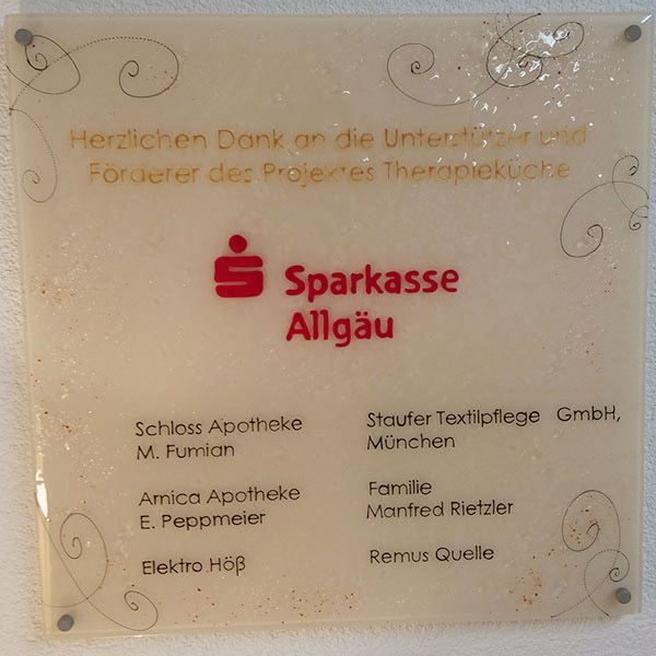 Ein ganz herzlicher Dank geht an die Stadt Marktoberdorf und alle weiteren Sponsoren und Förderer, die den Umbau der Therapieküche erst ermöglicht haben: