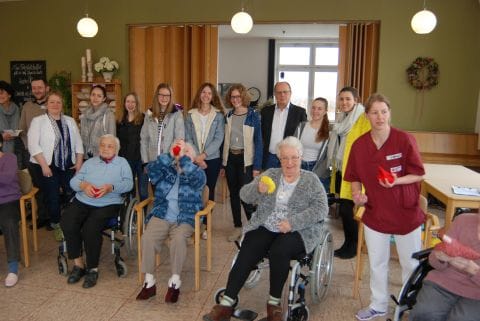 Dass die Schülerinnen all diese Aufgaben meisterten, zeigte der Erfolg. „In der ersten Stunde kamen acht Bewohner, mittlerweile mussten wir sogar in einen größeren Raum ausweichen“, sagte Ergotherapeutin Berktold. Ein Blick in die Gesichter der Senioren spiegelte folgende Aussage einer Bewohnerin wieder. „Die jungen Mädchen vermitteln uns Freude.“ Mit Begeisterung versuchten alle, ob im Rollstuhl sitzend oder noch gut beweglich, die Übungen mitzumachen. Klappte mal etwas nicht, so waren die Mädchen zur Stelle oder die Bewohner halfen sich untereinander.