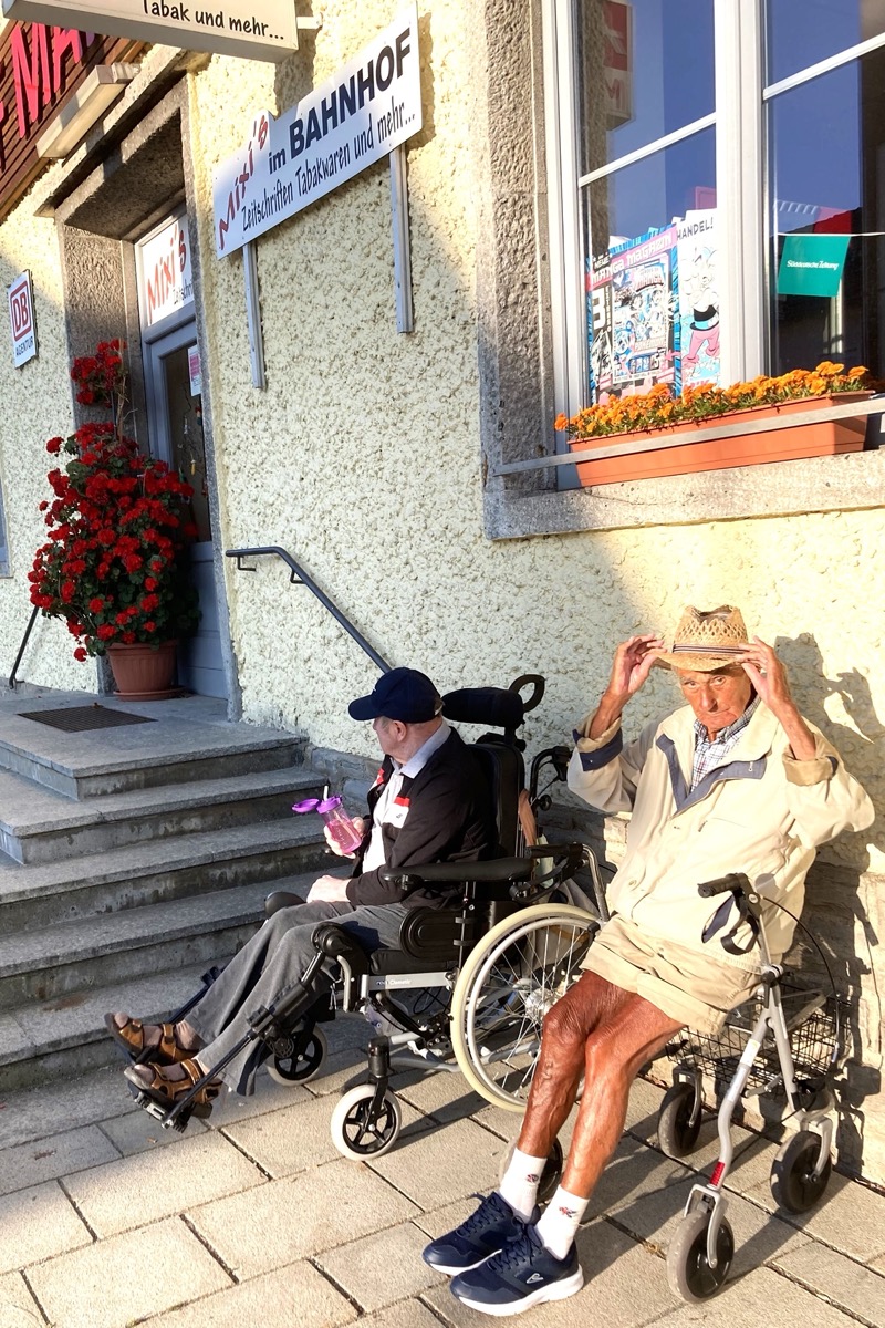 Erster Bürgermeister Dr. Wolfgang Hell bedankte sich bei Gabi Friedrich, Leitung Ergotherapie im Gulielminetti-Haus, sowie den beiden Bewohnern Horst Barra und Erich Königsberger für ihre Teilnahme an dem Testlauf des barrierefreien Ein- und Ausstiegs in die Züge am Marktoberdorfer Bahnhof. „Dank ihnen konnten verschiedene Szenarien durchgespielt und so die tatsächliche Eignung im Alltag erprobt und veranschaulicht werden“, so der Bürgermeister. Barrierefreiheit für Menschen mit Behinderung oder ältere Menschen sei Marktoberdorf eine besondere Herzensangelegenheit. Zum Dank übergab Bürgermeister Dr. Hell Gutscheine für 100 Fahrten mit dem Marktoberdorfer Flexibus innerhalb des Kernstadtgebietes an die Bewohnerinnen und Bewohner der Rotkreuz-Einrichtung.