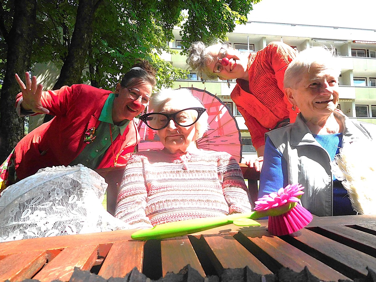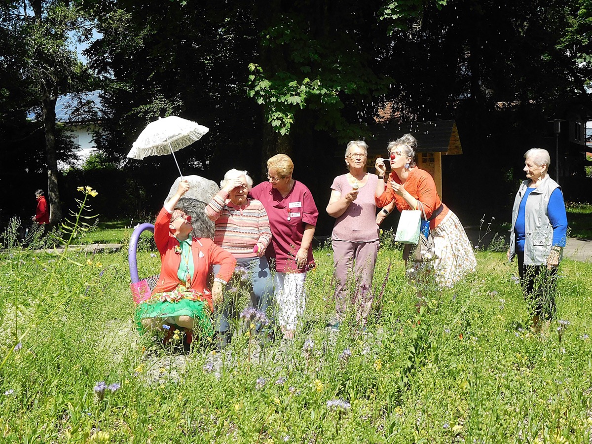 Einer der langjährigen Einsatzorte der KlinikClowns im Bereich Altenpflege ist das Gulielminetti Seniorenwohn- und Pflegeheim in Marktoberdorf. Hier freuen sich die Bewohnerinnen und Bewohner seit 20 Jahren über den regelmäßigen Besuch „ihrer“ Clowns. Einmal im Monat sorgen die KlinikClowns hier für fröhliche Stunden, steigern Wohlbefinden und Lebensqualität der Seniorinnen und Senioren und wecken neue Lebensfreude. Sie haben Musik im Gepäck, aber auch großes Einfühlungsvermögen und die Fähigkeit, einfach mal zuzuhören. Langjährige Erfahrung und Fortbildungen befähigen sie zudem in besonderem Maße, auf Demenzkranke einzugehen, so dass sie spielerisch Erinnerungen und oft vorher ganz unerwartete Reaktionsfähigkeiten aktivieren.