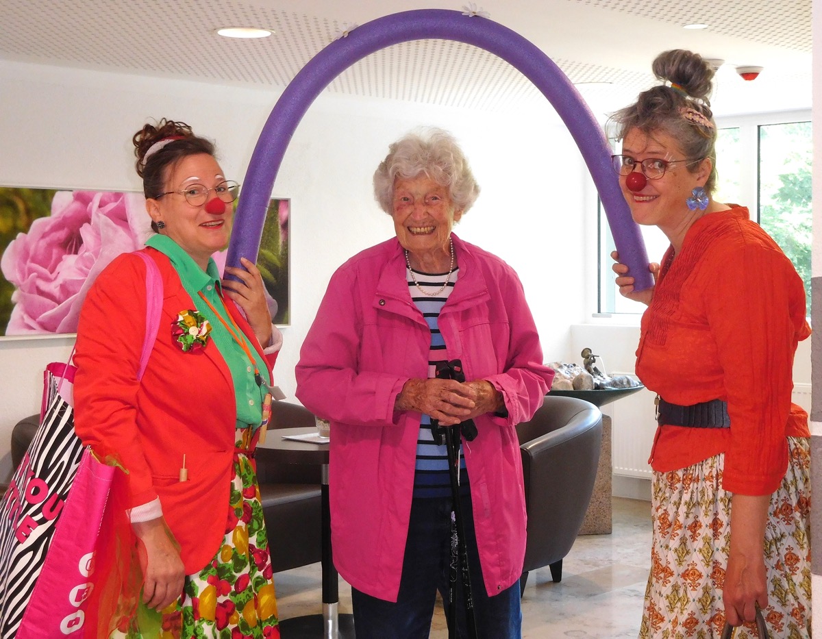 Einrichtungsleiterin Renate Dauner bestätigt die rundum positive Wirkung der Clownsbesuche: „Die KlinikClowns beglücken mit ihrem monatlichen Besuch um die 100 Seniorinnen und Senioren bei uns. Die Begegnungen finden in den Zimmern, Aufenthaltsbereichen und bei schönem Wetter auch draußen im Garten statt. Seit 20 Jahren ist der Clownsbesuch immer wieder ein besonderes Erlebnis im Haus, auch für die Mitarbeitenden und die Besucherinnen und Besucher. Diese wertschätzenden und einfühlsamen Begegnungen geben uns allen die Möglichkeit, auch in schweren Zeiten das Lachen nicht zu verlernen.“