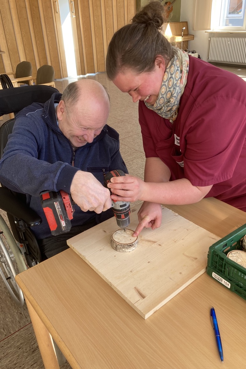‚Kunterbunt-Gesund‘, so lautet der Name der neuen Gruppe der Ergotherapie im BRK Gulielminetti Seniorenwohn- und Pflegeheim Marktoberdorf. Beim wöchentlichen Treffen der Bewohnerinnen und Bewohner gibt es bunt gemischte Angebote wie Bewegung, Gedächtnistraining, handwerkliche Tätigkeiten zur Förderung der Motorik, Zeitungsrunden und Alltagspraktisches. Gemeinsames Singen und Musizieren ist ebenfalls ein wichtiger Bestandteil. „Genauso wie die Aktivitäten sollen auch die Bewohner und Bewohnerinnen kunterbunt, unabhängig von ihren Fähigkeiten, daran teilnehmen“, erhofft sich Gabi Friedrich, Leitung der Ergotherapie.