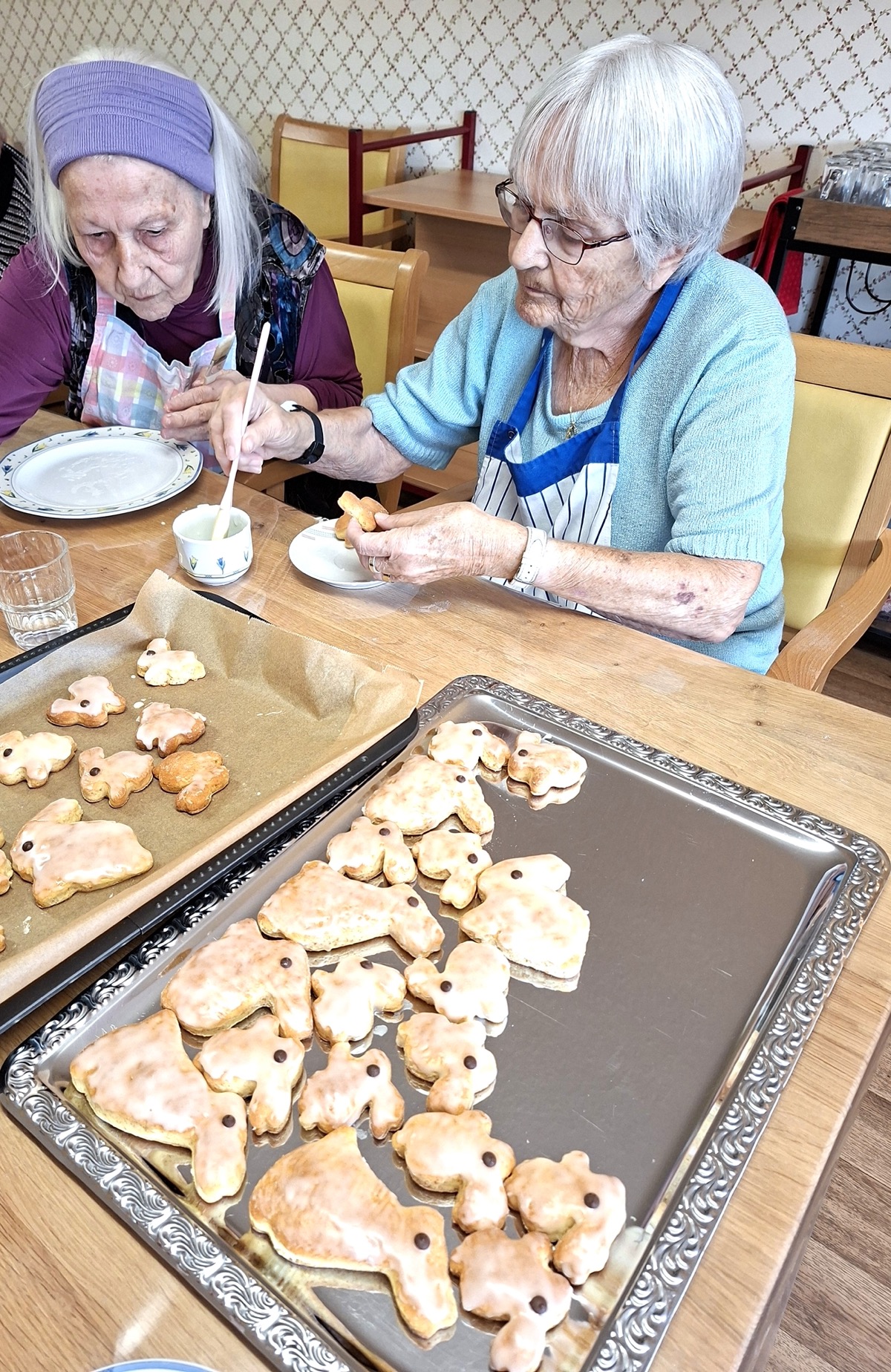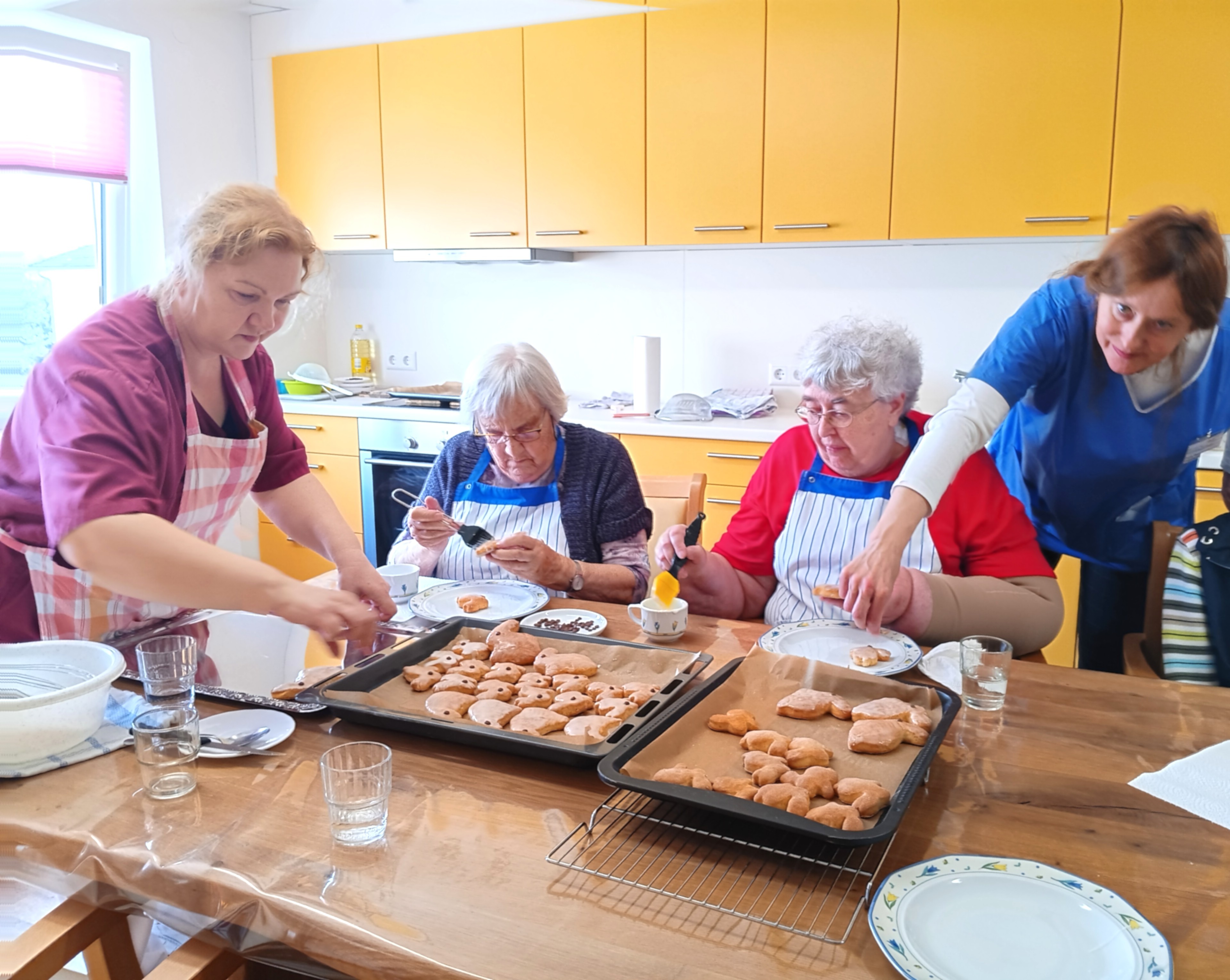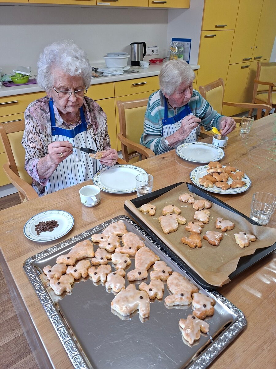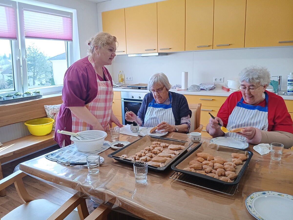 Einrichtungsleitung Renate Dauner ließ es sich nicht nehmen, die frisch gebackenen Häschen persönlich zu begutachten und zu verkosten. „Es hat wunderbar nach Butter und Vanille, wie in einer Backstube, gerochen und fantastisch geschmeckt. Auch bei mir wurden Kindheitserinnerungen erweckt.“ Die Bewohnerinnen und Bewohner genossen die gemeinsamen Vorbereitungen. „Beste Voraussetzungen für ein gelungenes Osterfest“, findet Betreuungsassistentin Eva Fehervary, die sogar ihr persönliches Osterhasenrezept verriet.