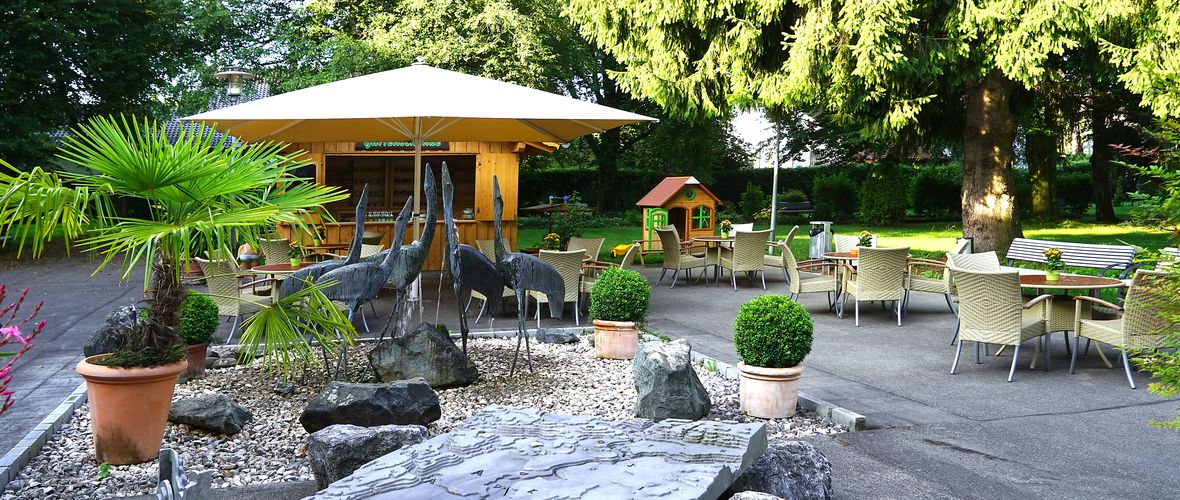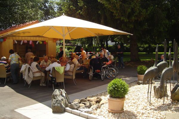 Ein zusätzliches Angebot stellt unsere Gartenschenke mit Bewirtung dar. Ein idealer Platz für einen geselligen Plausch mit Angehörigen, Freunden oder Bekannten. Bei schönem Wetter finden im Garten regelmäßig Veranstaltungen statt, die von unseren Bewohnern gerne besucht werden. Bei schlechter Witterung und im Winter treffen wir uns im Speisesaal im ersten Obergeschoss oder im Begegnungsraum, der Bibliothek oder auf den Stationsnischen.