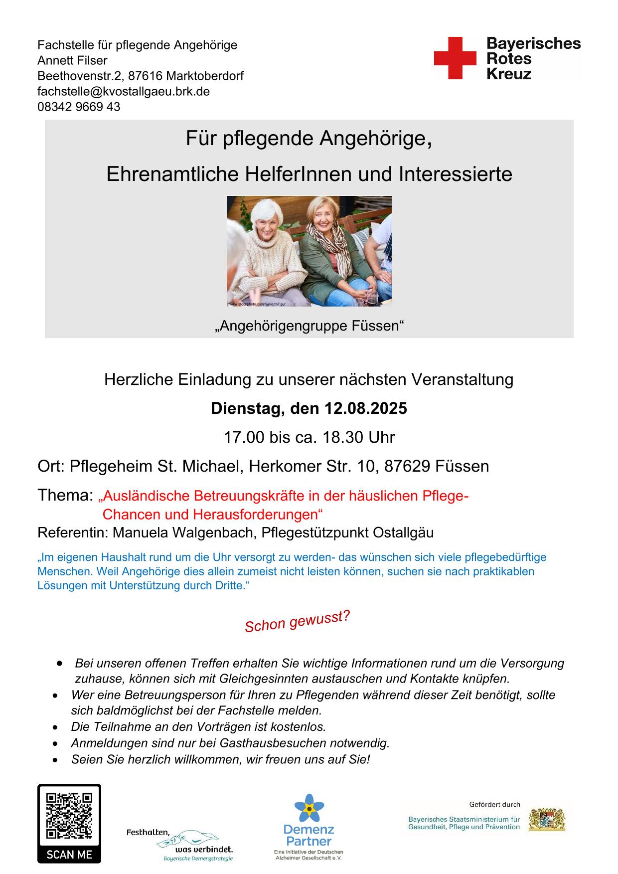 Angehörigengruppe Füssen: „Ausländische Betreuungskräfte in der häuslichen Pflege - Chancen und Herausforderungen“