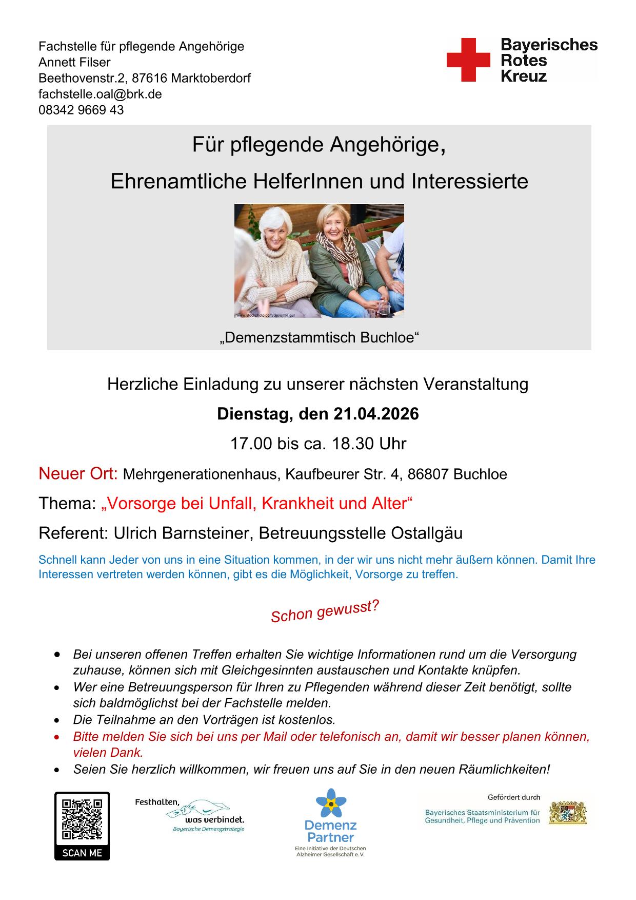 Angehörigentreff am 21. April: „Vorsorge bei Unfall, Krankheit und Alter"