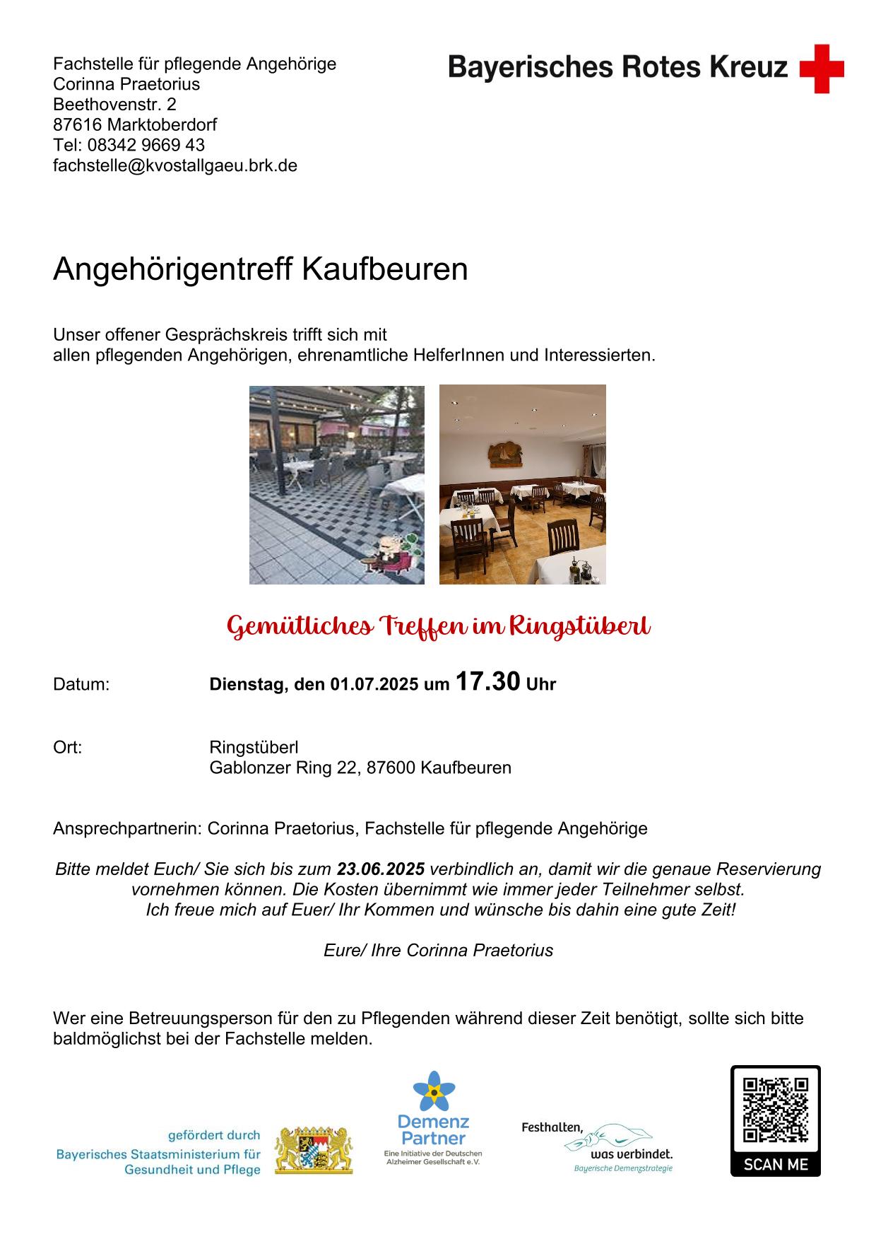 Einladung Angehörigentreff: Gemütliches Treffen im Ringstüberl