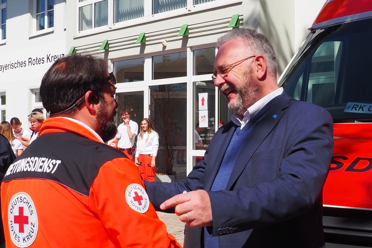 BRK-Kreisgeschäftsführer Thomas Hofmann begrüßte die Anwesenden und unterstrich die Bedeutung dieses Tages: „Kommen Sie miteinander ins Gespräch“. In seinem Grußwort betonte der stellvertretende Landrat und Bürgermeister Lars Leveringhaus: „Wir stehen als Landkreis und Gemeinde fest hinter unseren Blaulichtorganisationen und eben dem Roten Kreuz. Sie geben den Menschen ein Gefühl der Sicherheit.“ Der gordische Knoten der Standortsuche wurde dank der Familie Beck gelöst. „Ich wünsche mir, dass die Nutzung dieses Ortes niemals endet.“