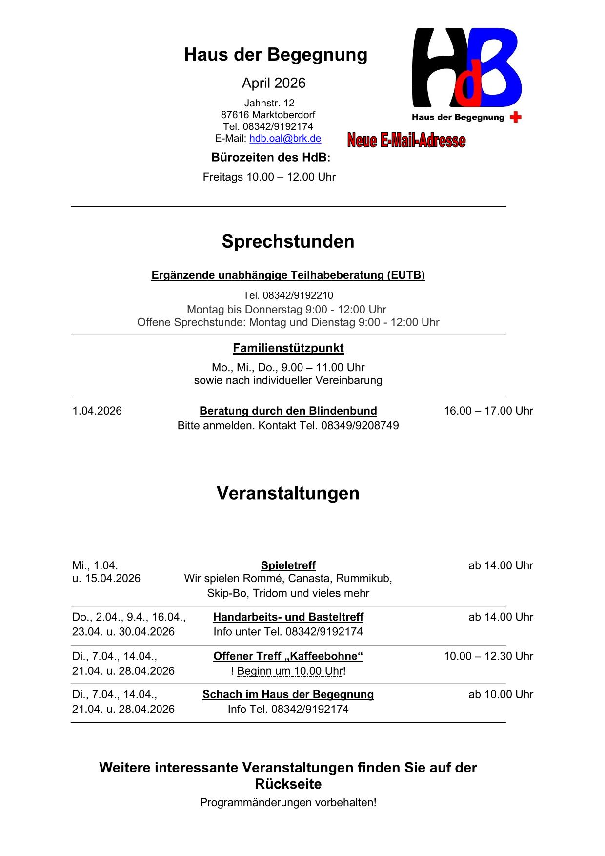 Unser Haus der Begegnung in der Jahnstraße 12 in Marktoberdorf hat die Türen für Sie geöffnet.