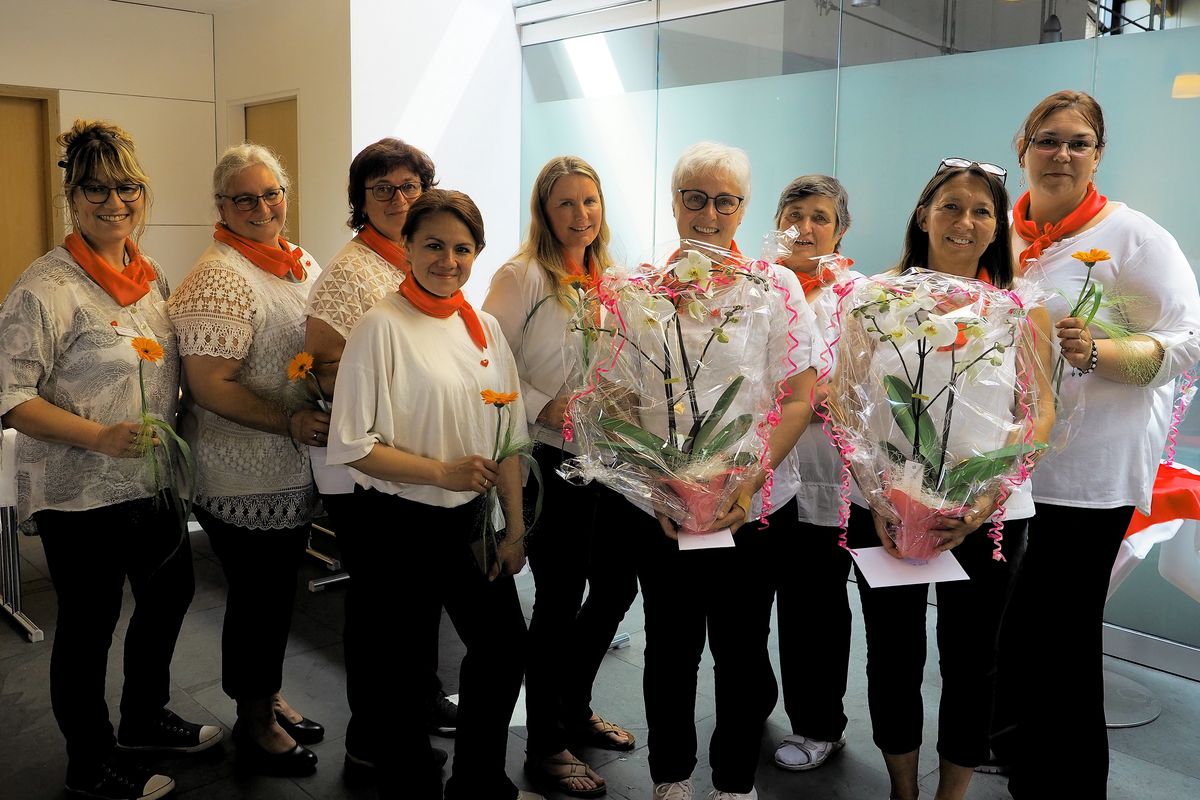 Auch Thomas Hofmann, Kreisgeschäftsführer beim BRK Ostallgäu, ist stolz auf die Tagespflegeeinrichtung. Die zuverlässige Unterstützung der Stadt Buchloe sowie die einfühlsame Arbeit des ehren- und hauptamtlichen Teams ermöglichen, dass die Gäste den Tag in geborgener Atmosphäre verbringen können. „Aus Rückmeldungen der Angehörigen wissen wir, dass den Menschen die Angebote in der Gruppe Spaß machen, seien es Gespräche, Spiele oder die Gymnastik.“ Renate Dantinger dankte ausdrücklich auch dem Fahrdienstteam: „Sie bringen die Tagesgäste freundlich und sicher in die Tagesstätte.“ Sie ehrte außerdem die beiden Mitarbeiterinnen der ersten Stunde, Gertrud Merz sowie Renate Wende. „Was die Tagespflege in Buchloe so besonders macht, sind das Miteinander und die Unterstützung durch die Angehörigen“, ergänzte Helga Lehmann, Leitung der BRK-Tagespflege.