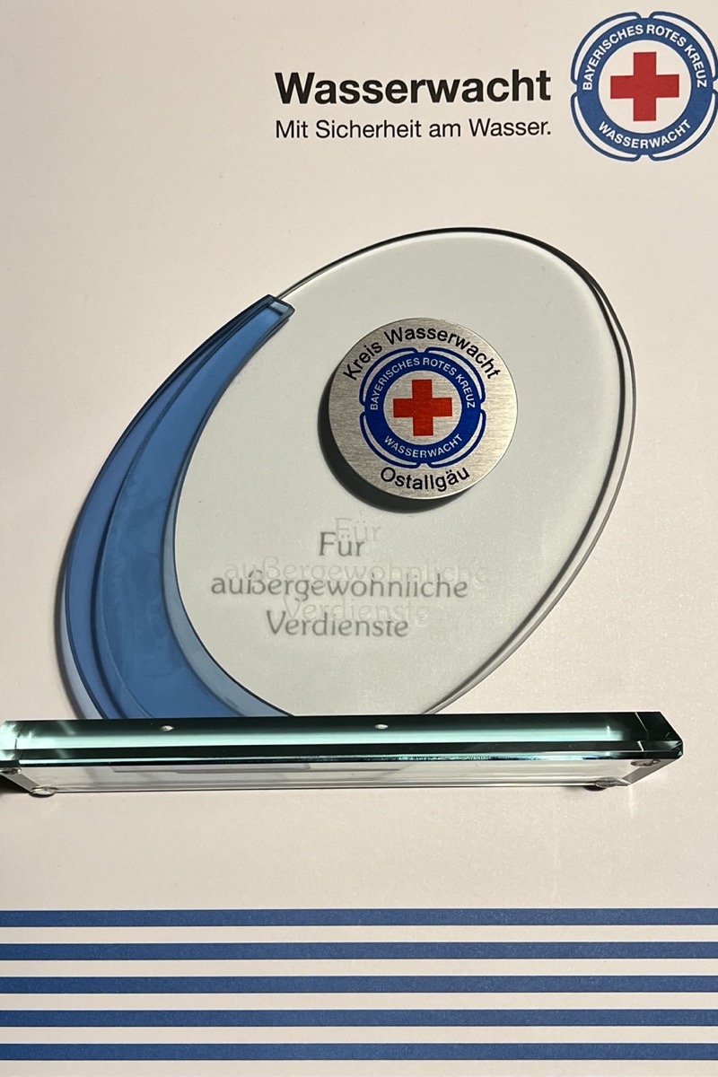 Der Kreiswasserwacht-Chef selbst hat die Ehrung ins Leben gerufen. „Wir wollen damit herausragende Verdienste von Mitgliedern unserer Ostallgäuer Wasserwachten würdigen.“ Darüber hinaus soll die Plakette auch Inspiration für andere sein, sich für die Gemeinschaft einzusetzen. Sie wird in Zukunft alle vier Jahre verliehen.