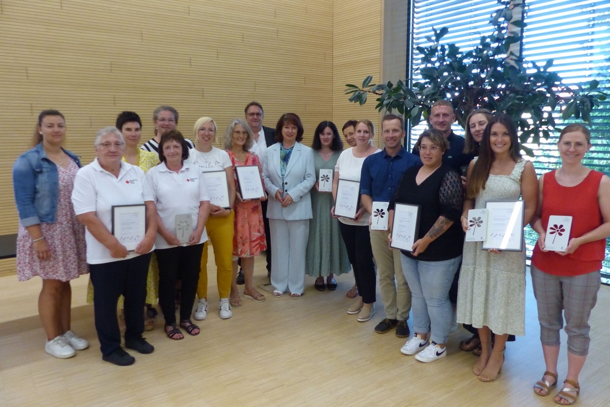 Gelebte Inklusion und Teilhabe, und zwar nicht nur auf dem Papier. Für Ihr Engagement und Ihren Einsatz wurde am 23. Juli 2024 die Offene Behindertenarbeit Kaufbeuren-Ostallgäu (OBA) mit der Inklusionsblume des Landkreises Ostallgäu ausgezeichnet.