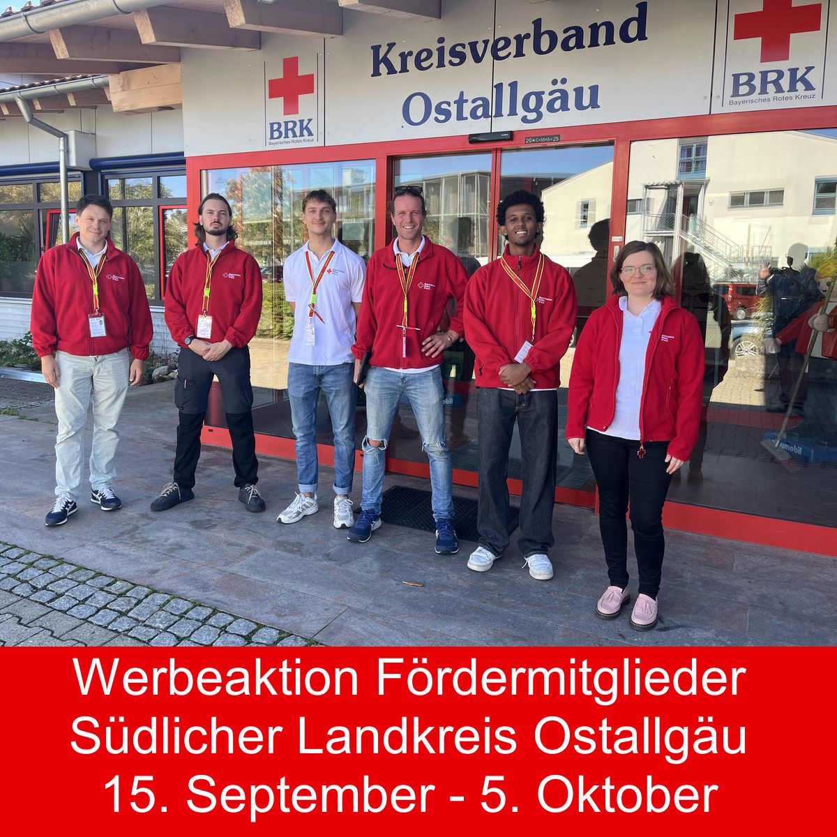 Ab sofort bis 5. Oktober werben sechs Studierende an der Haustüre für eine Fördermitgliedschaft im hiesigen Roten Kreuz und für die Erhöhung bestehender Mitgliedsbeiträge. Sie sind im Auftrag des BRK Kreisverbands Ostallgäu in den südlichen Landkreisgemeinden unterwegs. Die Werber tragen Rot-Kreuz-Kleidung und führen einen speziellen BRK-Ausweis mit sich.