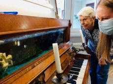 Fischkonzert im Klavier - Schülerin und Bewohnerin pflegen gemeinsam Aquarium