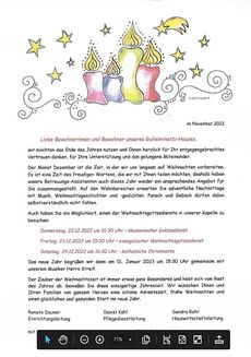 Weihnachtsbrief 2022 des Gulielminetti an alle Bewohnerinnen und Bewohner