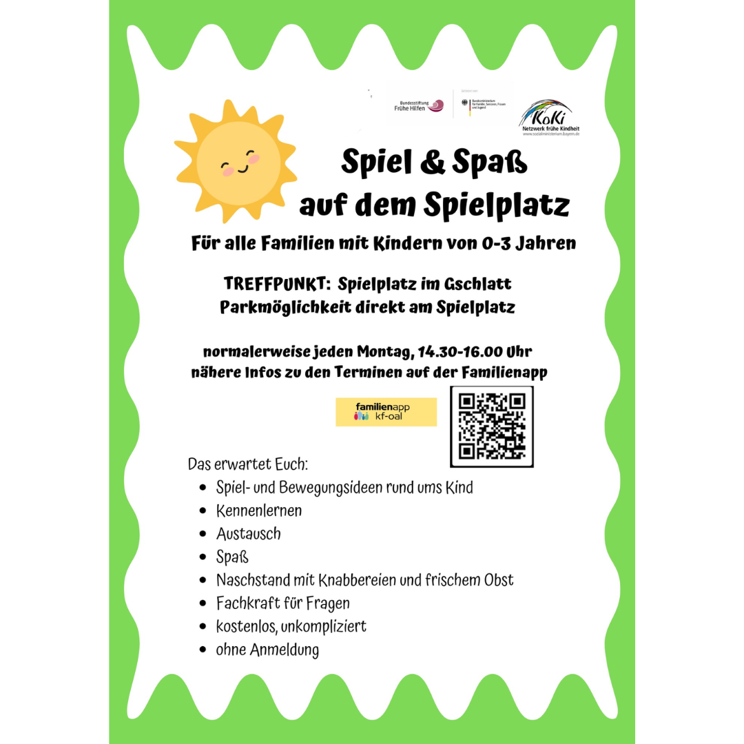 Das KoKiNetzwerk lädt (zum Download) ALLE Familien mit Kindern von 0-3 Jahre zum Spiel und Spaß auf dem Spielplatz im Gschlatt (kostenlos)