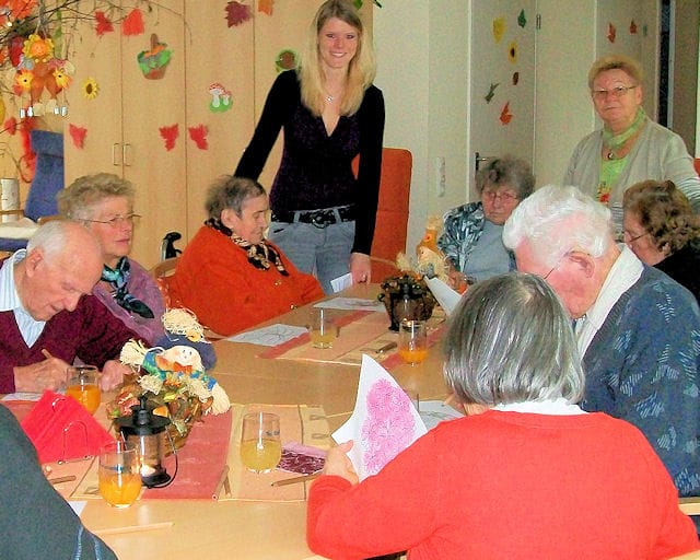 Unter Berücksichtigung der individuellen Wünsche und Fähigkeiten bieten wir neben Gymnastik und Gedächtnistraining weitere Übungen zum Erhalt ihrer Selbständigkeit an. Zielgerichtete therapeutische Angebote stehen jedem Tagesgast zur Verfügung. Wir beenden den Tag mit einem Nachmittagskaffee.