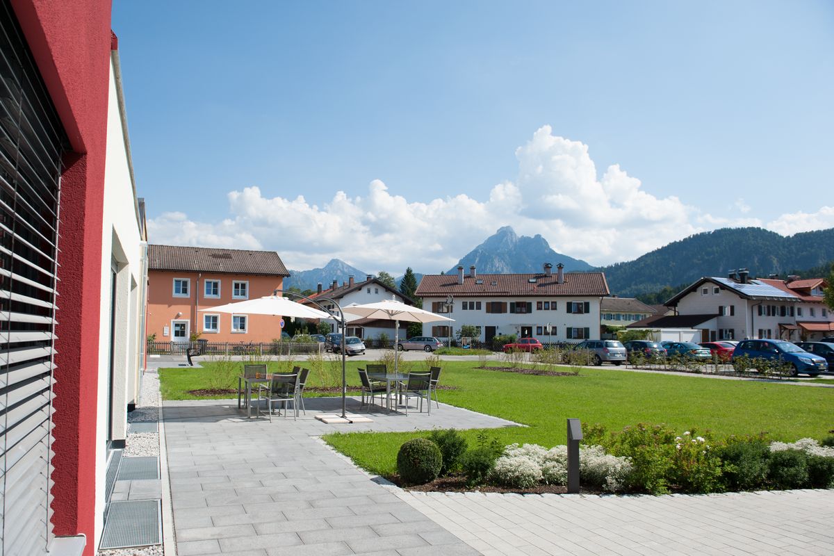 Das 2012 komplett neu gebaute Seniorenzentrum St. Martin liegt in der Ostlandstraße 6 im westlichen Teil der Stadt Füssen. Der Urlaubs- und Kurort Füssen im südlichen Allgäu am Ende der "Romantischen Straße" liegt eingebettet zwischen anmutigen Alpengipfeln, Wiesen und Wäldern, Flüssen und Badeseen. In unmittelbarer Nachbarschaft liegen das von Kronprinz Maximilian von Bayern aus der Burgruine wieder aufgebaute Schloss Hohenschwangau sowie das Märchenschloss Neuschwanstein.