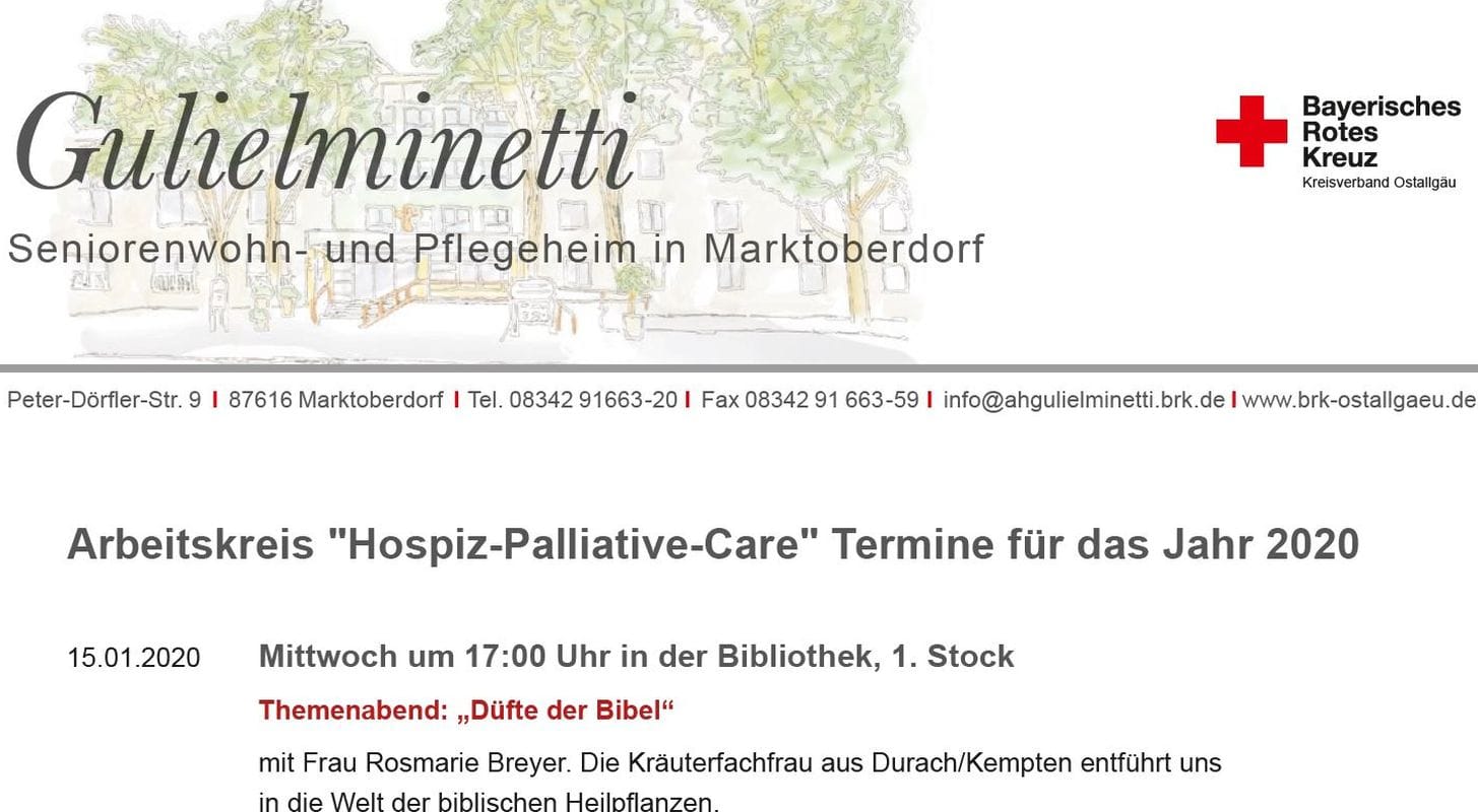 Treffen des AK "Hospiz-Palliative-Care" am Mittwoch, 26.02.2020 um 17.00 Uhr in der Bibliothek, 1. Stock